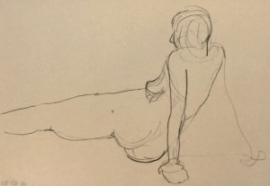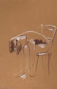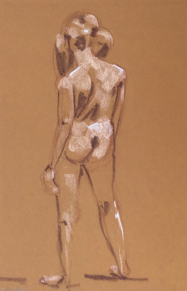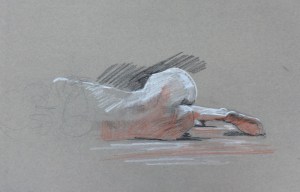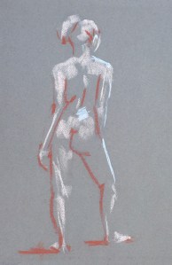 Three four minute gesture studies. Conté crayon on sketching paper. 35 x 50 cm. or 13 3/4 x 19 3/4 in.