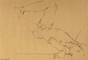 Five gesture studies. Black charcoal on tinted sketching paper. 35 x 50 cm. or 13.75 x 19.75 in.