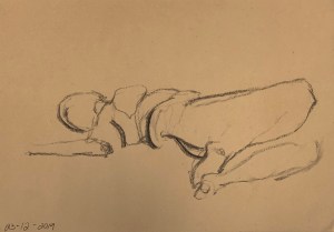 Charcoal on tinted sketching paper, 35 x 50 cm or 13.75 x 19.75 in.