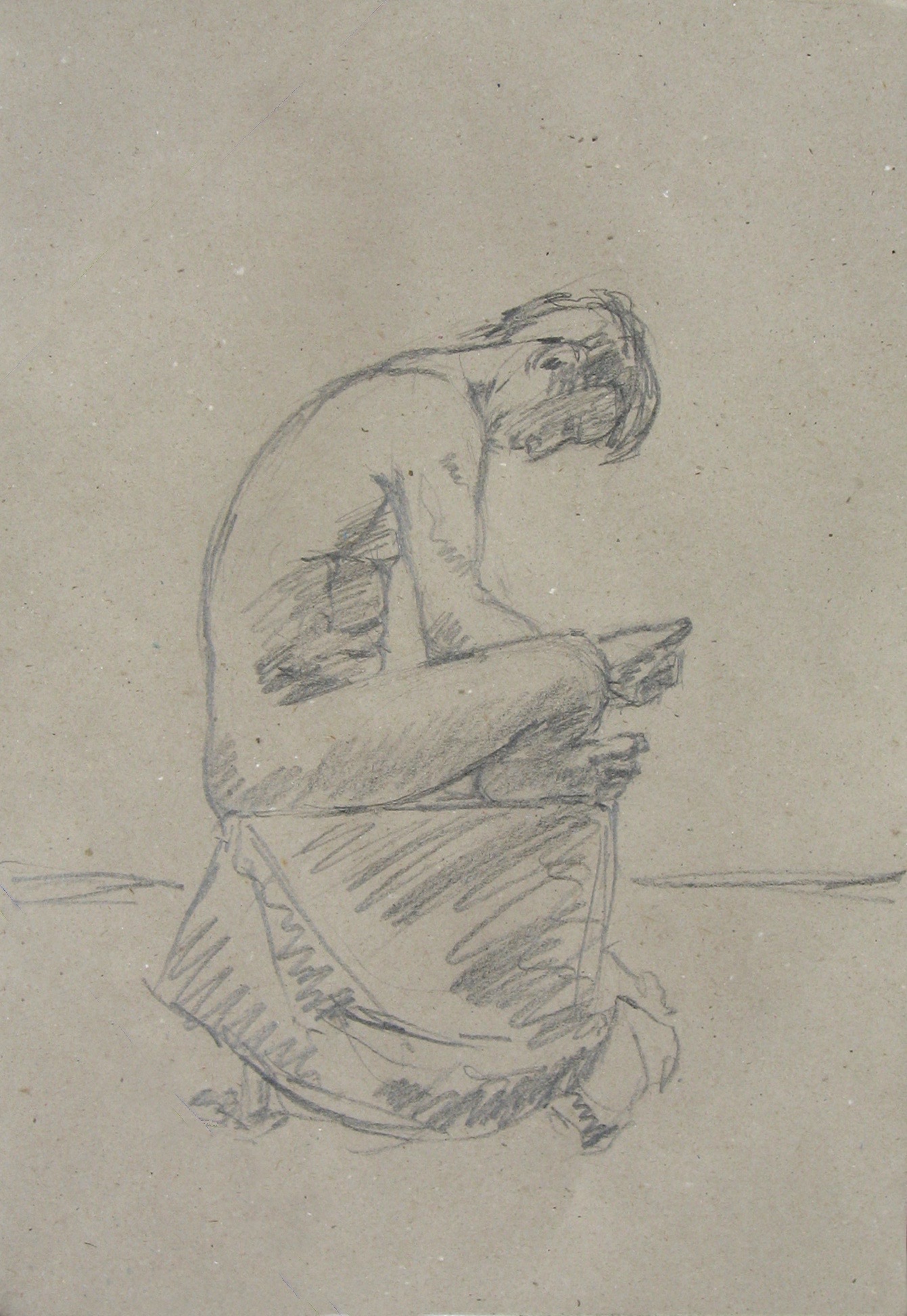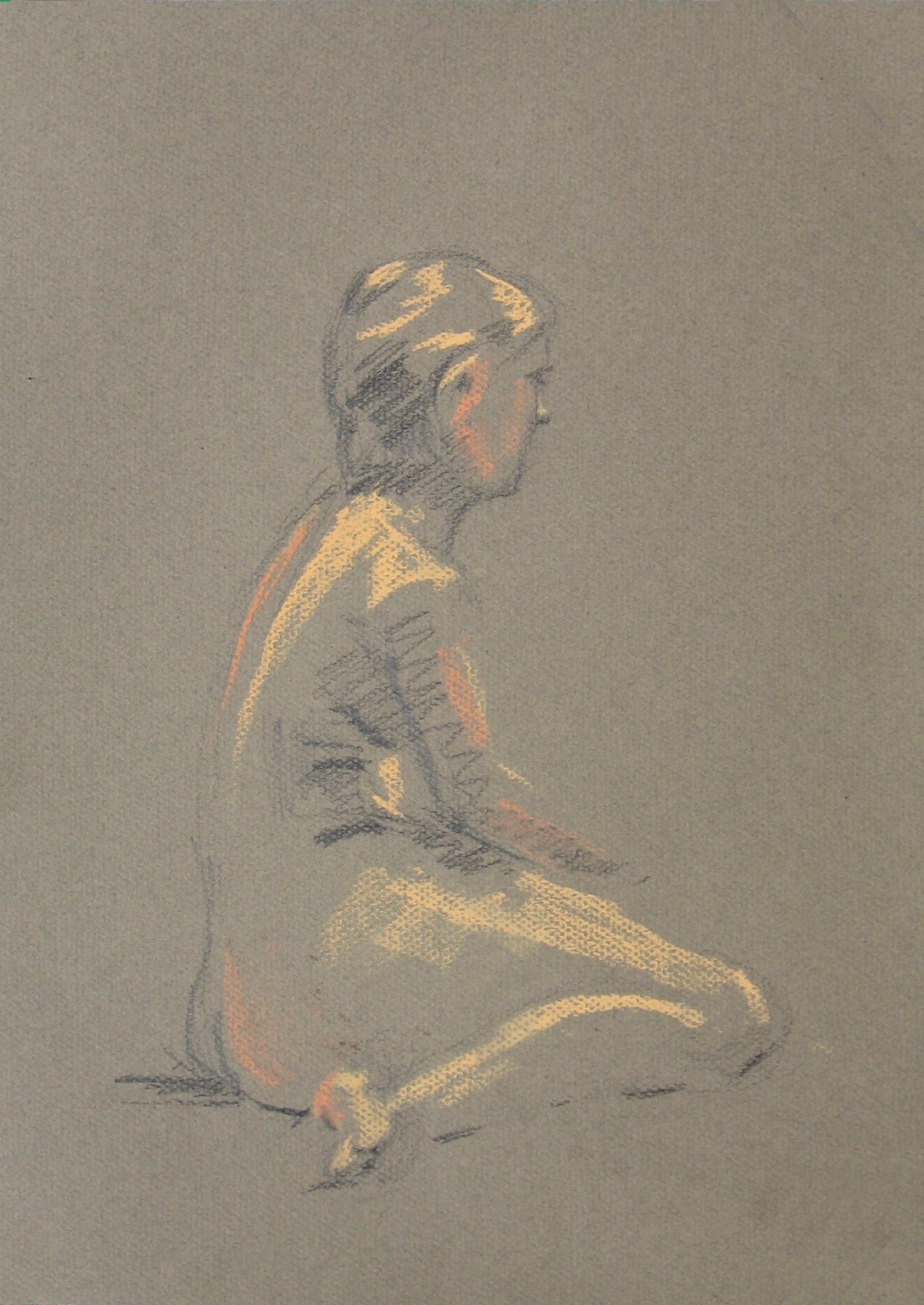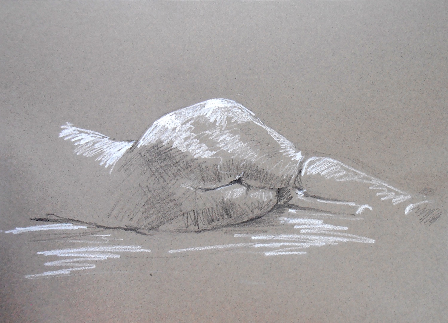 Pencil and conte pencil on toned paper. 21 x 29.5 cm or 8 1/4 x 11 1/2 inches. August 2014.
