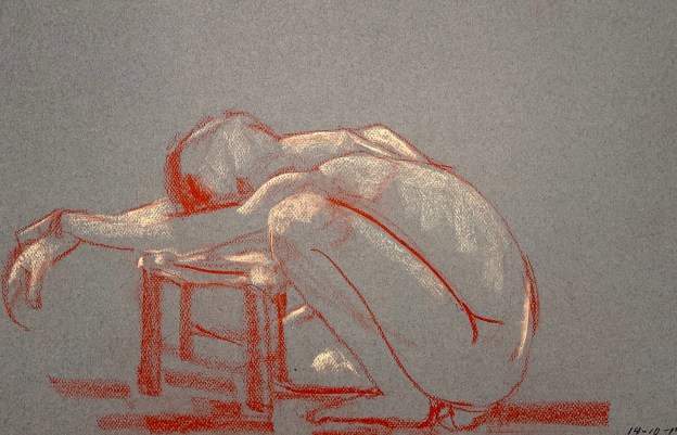 Fifteen minute study. Conté crayon tightened with pastel on tinted Canson paper. 32 x 50 cm.