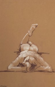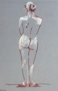 These two toned drawings are 15 minute studies. Conté pencil highlighted with conté crayon onpastel paper. 32.5 x 50 cm or 13 x 19 3/4 in