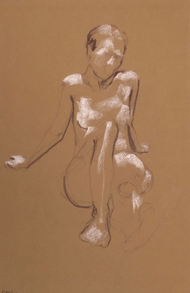 After a long (way too long) hiatus, I was finally able to return to figure drawing this week. What a delightful surprise to find that the model was one of my favorites(!). I distinctly remember when he posed for us last (about two years ago). That evening, almost every drawing turned out well, partly because he is/was such a good model: comfortable in his own skin and sensitive to what makes for an interesting pose. In the past (not knowing his name) I had called him Tintin, but as I learned this week his real name in Frederick. Thanks, Frederick!