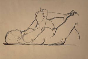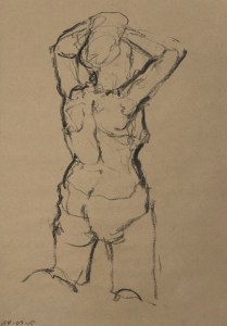Five minute gesture study. Charcoal pencil on toned recycling paper. 35 x 50 cm.