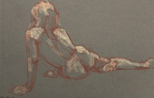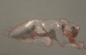 My own inspiration then, my own questions, after drawing from the figure on and off for about forty years, were and are very specific. I have or have had no difficulty feeling the figure or expressing my feelings on paper but I certainly have noticed that I don’t always get the proportions right and, relative to anatomy, I have felt myself to be quite ignorant. In the world of Modern/Contemporary Art, neither of those things are a problem so long as you say something “personal” and that was what I was taught back in the day at my liberal-arts-college art department. Personal distortion is more or less expected. But there, for whatever reason, my temperament begs to differ: I feel awkward if things are off while my body tells me with a distinct sense of relaxation when I get it right.