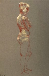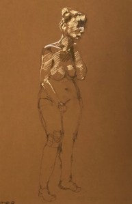 I can imagine that over time I will be able to return to the chiaroscuro I used to enjoy so much. That is, placing highlights and shadows quickly – but accurately. For now though, placement on the page with proportional and gestural accuracy is improving so I’m happy.