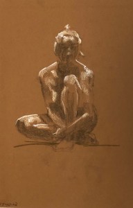 After a looong hiatus from Bruges but also from live figure drawing, I’m very happy to be back. During this particular interim I’ve been concentrating on studying the anatomy of the human figure: bones (skeletal), muscles, tendons, ligaments; but also differing schemes for abstracting figurative essentials in an accurate way. Mostly, these studies were done at the Watts Atelier in Encinitas, California – and most were done by using photo references from books. Tedious, perhaps. Uninspiring, well, yes; so you just had to supply your own. Which I did.