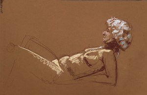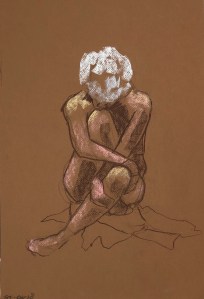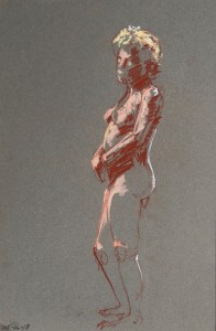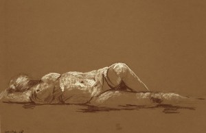 Two fifteen minute poses. Conté crayon on tinted Canson pastel drawing paper. 32.5 x 50 cm or 13 x 19.75 in.