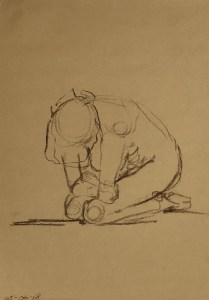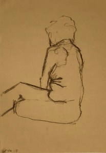 Three four minute studies. Black charcoal on tinted sketching paper. 35 x 50 cm or 13.75 x 19.75 in.