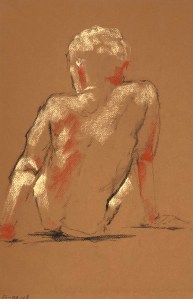 After a looong hiatus from Bruges but also from live figure drawing, I’m very happy to be back. During this particular interim I’ve been concentrating on studying the anatomy of the human figure: bones (skeletal), muscles, tendons, ligaments; but also differing schemes for abstracting figurative essentials in an accurate way. Mostly, these studies were done at the Watts Atelier in Encinitas, California – and most were done by using photo references from books. Tedious, perhaps. Uninspiring, well, yes; so you just had to supply your own. Which I did.