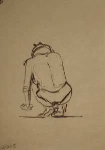 Three four minute poses. 35 x 50 cm. or 13.75 x 19.75 in. Black charcoal on tinted sketching paper.