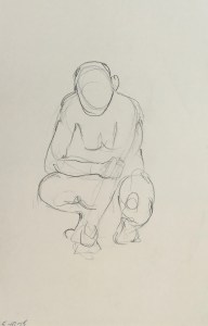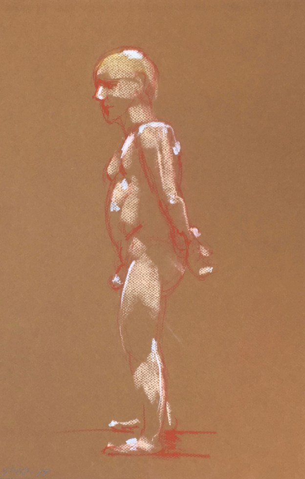 A succession of quick 2 minute poses. Chalk on toned drawing paper. 14 x 17 inches or 35.5 x 43.4 cm.