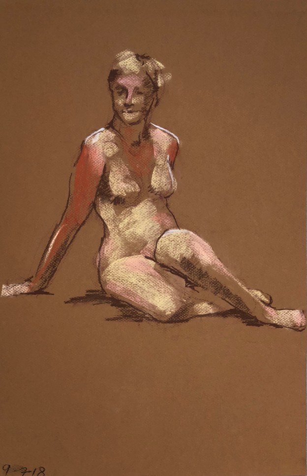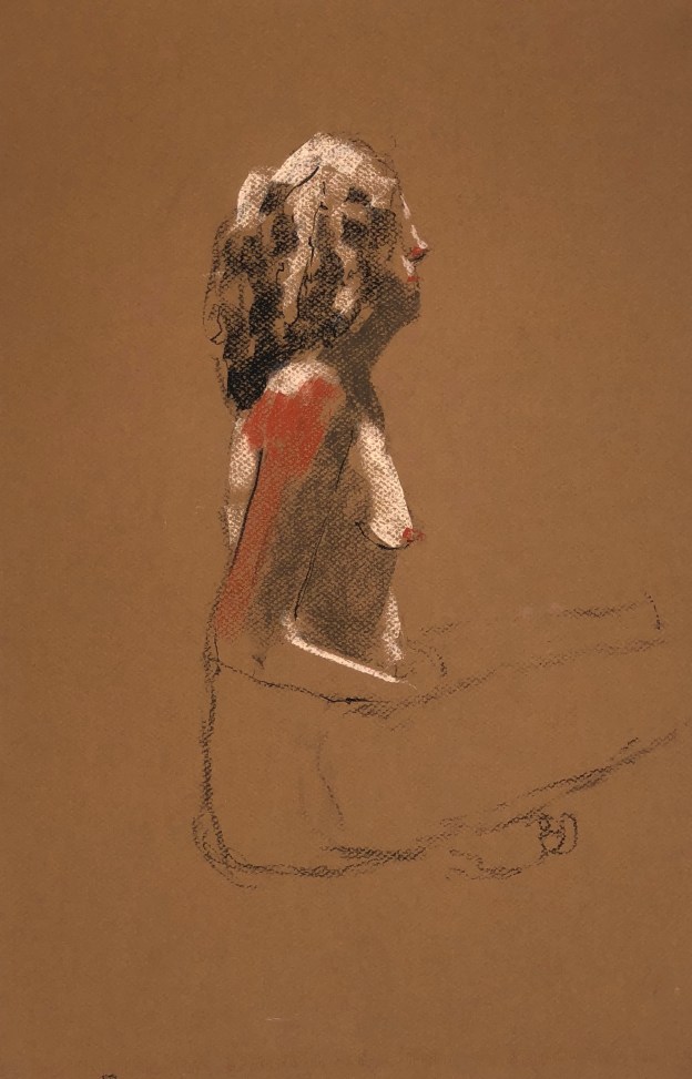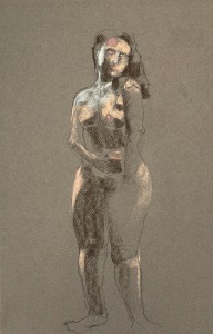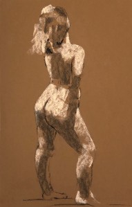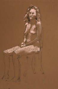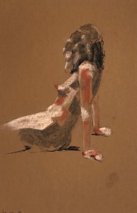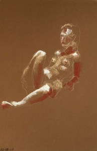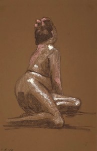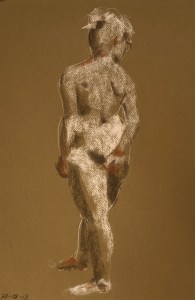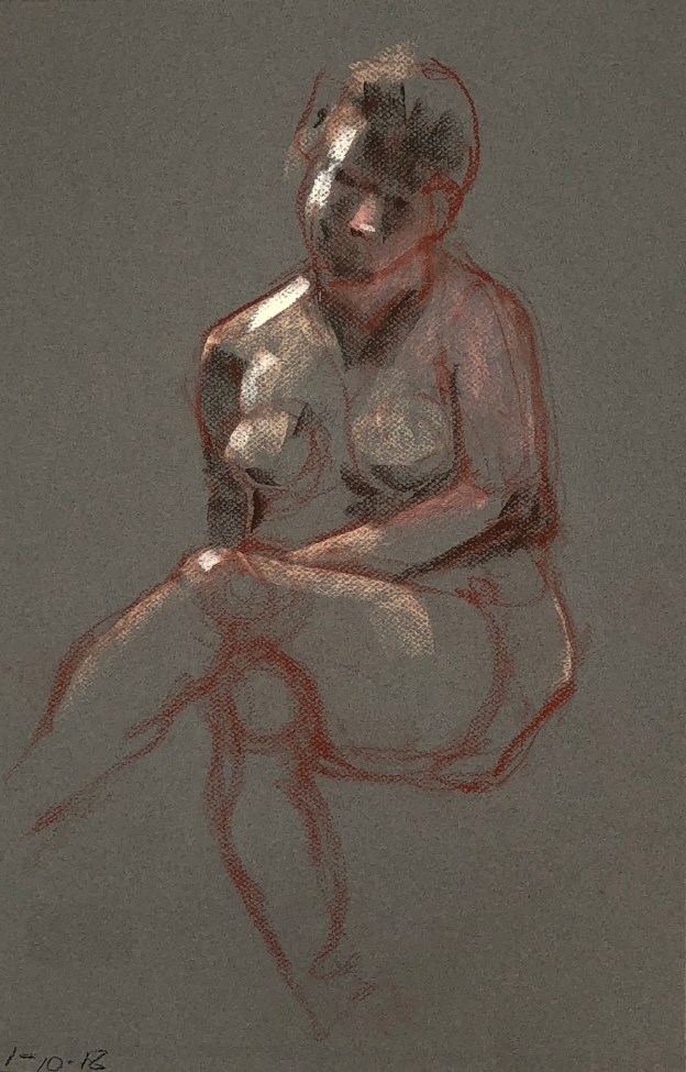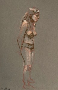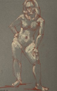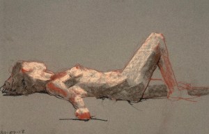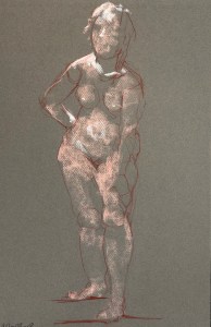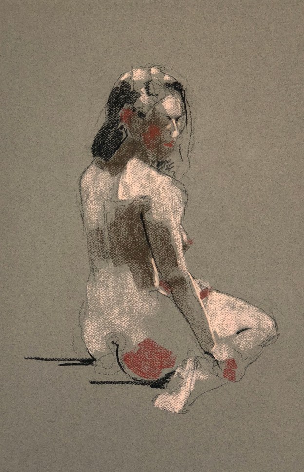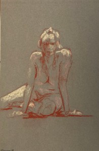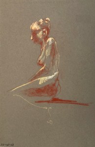 Two fifteen minute poses. Conté pencil and crayon on Canson pastel paper. 32.5 x 50 cm or 13 x 19.75 in.
