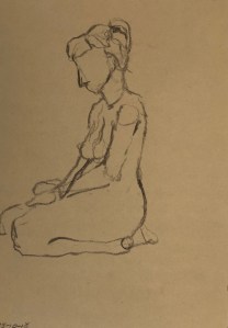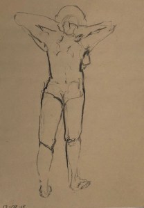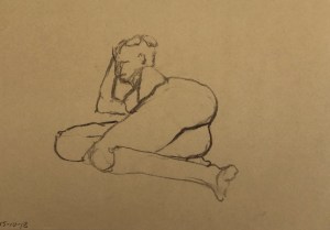 Tonight we had Soeren (sp?). He is a tall lanky fellow, really good at taking interesting poses. The difficulty in drawing him is that he is so long and lean that I usually run out of paper before I have packed all of his body onto the page. But that wasn’t really the case tonight, especially for the four minute gesture poses, because he tended to fold up into himself in various ways. These too, presented their own kind of challenge, as it was difficult to discover what body parts were doing what. Anyway, here is selection of drawings from the evening.