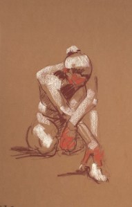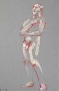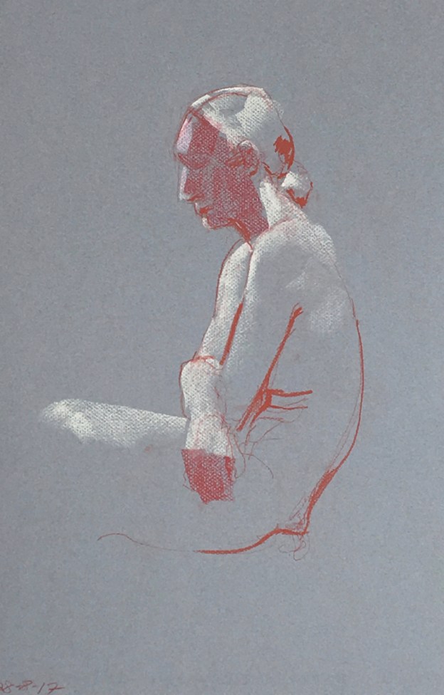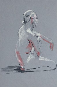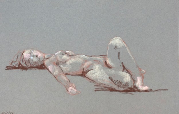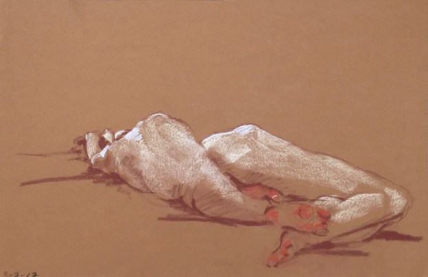 Two fifteen minute studies. Conté crayon and conté pencil on toned pastel paper. 32.7 x 50 cm or 13 x 19 3/4 in.
