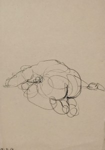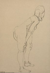 Four four minute gesture studies. Charcoal on brown tinted sketching paper. 35 x 50 cm or 13.75 x 19 3/4 in.