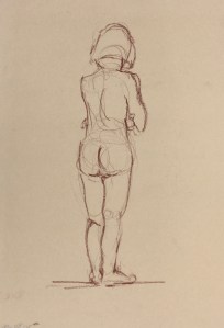 Below four fifteen minute poses. Conté pencil and crayon on Canson pastel paper. 32.5 x 50 cm or 13 x 19.75 in.