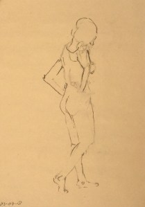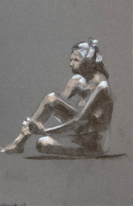 Tonight a new model. I think it was her first time ever modeling. She was very good. Sometimes it seemed she realized – a little too late – the difficulty of something she had committed herself to, but stuck with it anyway. Bravo!