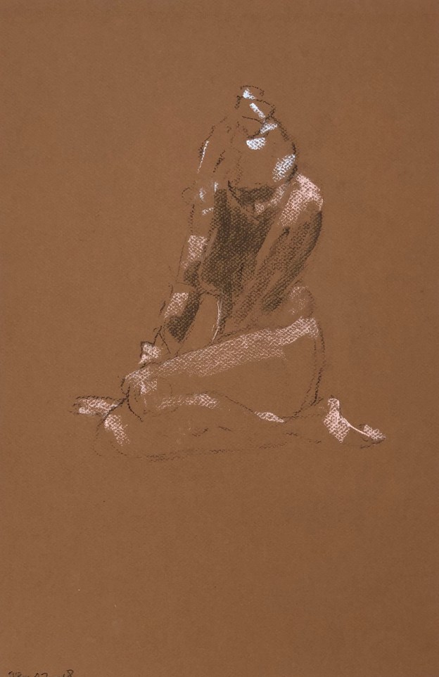 Below four fifteen minute poses. Conte crayons and conté pencil on toned pastel paper. 32.7 x 50 cm or 13 x 19 3/4 in.