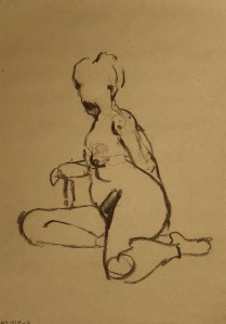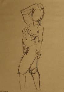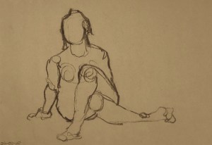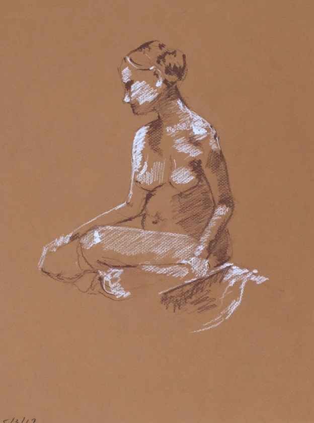 Our model tonight, Lisa. She is one of our regulars. Turns out, she works as a nurse and the days that she models for us are long days since she has to get up at 4:30 to get to work(!). We had a nice chat at the break as she puffed on her electronic cigarette. Here below a few fifteen minute poses and some four minute ones, too.