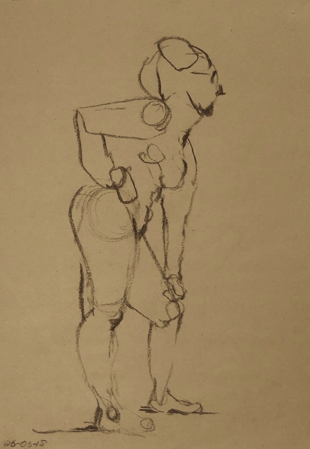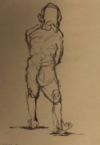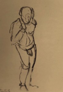 Four minute poses. Black charcoal on tinted sketching paper. 35 x 50 cm. or 13.75 x 19.75 in.