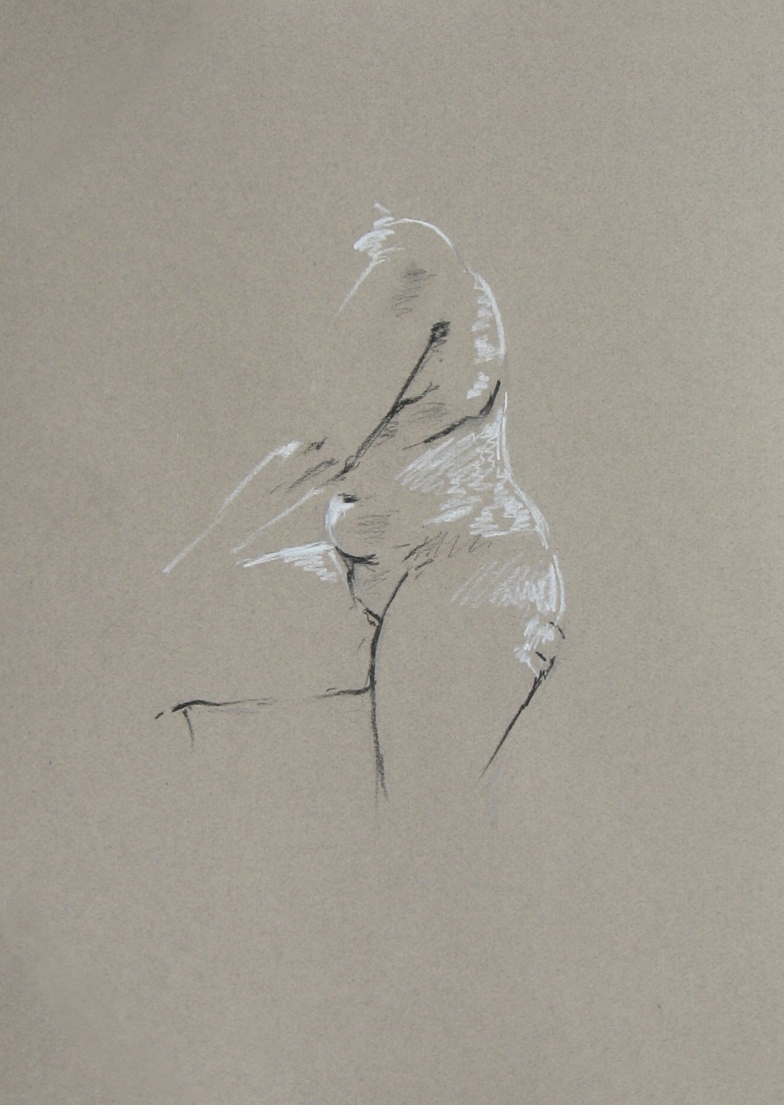 Three four minute studies. Charcoal on toned sketching paper. 35 x 50 cm. or 13 3/4 x 19 3/4 in.