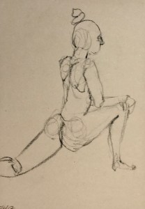One of our regulars tonight, Luc. He is a dancer, so he’s also a very good model. Lithe, interesting movement. I chose to spotlight the twisting-reclining pose above because it was a challenging one and also because I think it’s a good example of how to say much with little.