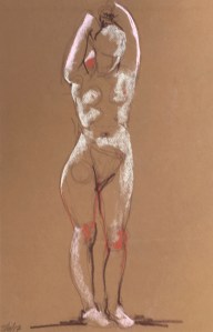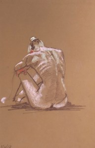 Below two fifteen minute poses. Conté pencil and crayon on Canson pastel paper. 32.5 x 50 cm or 13 x 19.75 in.